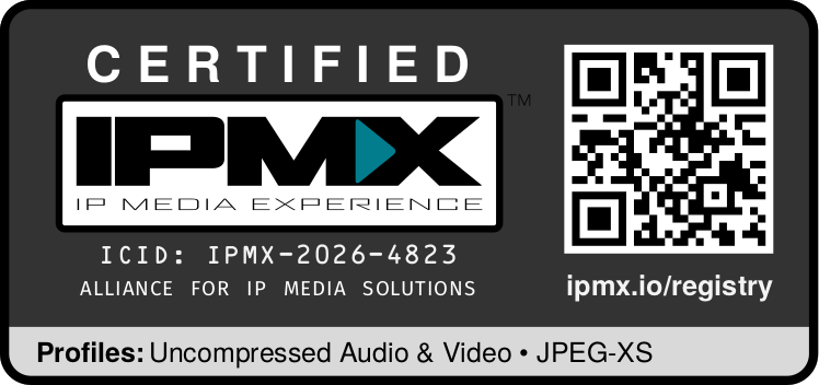 After passing a series of rigorous tests at the inaugural certification and testing event in Geneva, we are proud to receive the official IPMX Certified designation. This milestone reinforces our commitment to open standards and provides a proven foundation for developing interoperable AV-over-IP products.