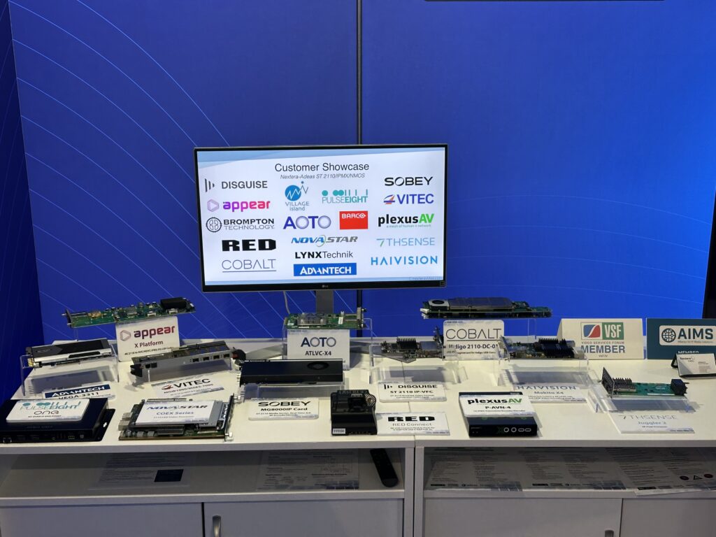 Nextera-Adeas would like to thank our customers 7thSense, Advantech, Aoto, Appear, Cobalt Digital, Disguise, Haivision, Lynx Technik, Novastar, PlexusAV, Pulse Eight, Sobey, RED, and Vitec, for participating in our customer showcase at IBC 2025. In addition to the latest Nextera/Adeas Universal ST 2110/IPMX Transmitter/Receiver and NMOS Switching demo featuring Nextera-Adeas cores running on AMD and Altera dev kits, the Nextera booth hosted a showcase of customer products that have been developed quickly and easily using Nextera-Adeas 2110/IPMX FPGA cores and NMOS software.